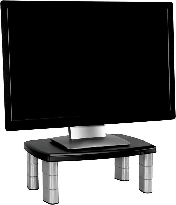 3 M 3 M adjustable monitor arm, height adjusts 3.5 inches to 5 7 CM, holds 36.3 kilogram, columns between 20.32 cm space, silver / black ( MS 80 B )