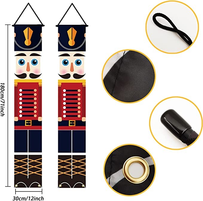 Nutcracker Christmas Decorations -Outdoor Christmas Porch hanging Decorations-Soldier Model Nutcracker Banners - for Holiday Outdoor Indoor Kids Garden Yard Party- 1 Pair