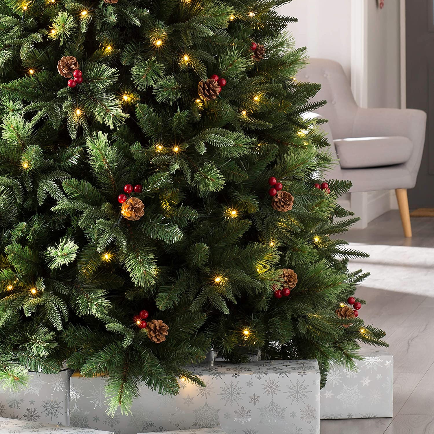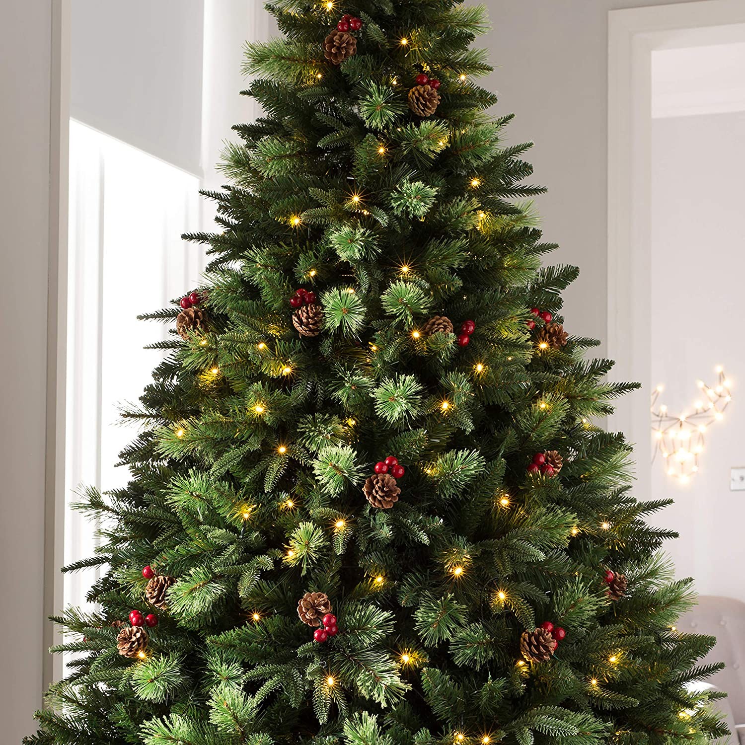 WeRChristmas Pre-lit Victorian Mixed Tip Berries & Cones Christmas Tree with 260 LED Lights, Green, 7 feet/2.1 m