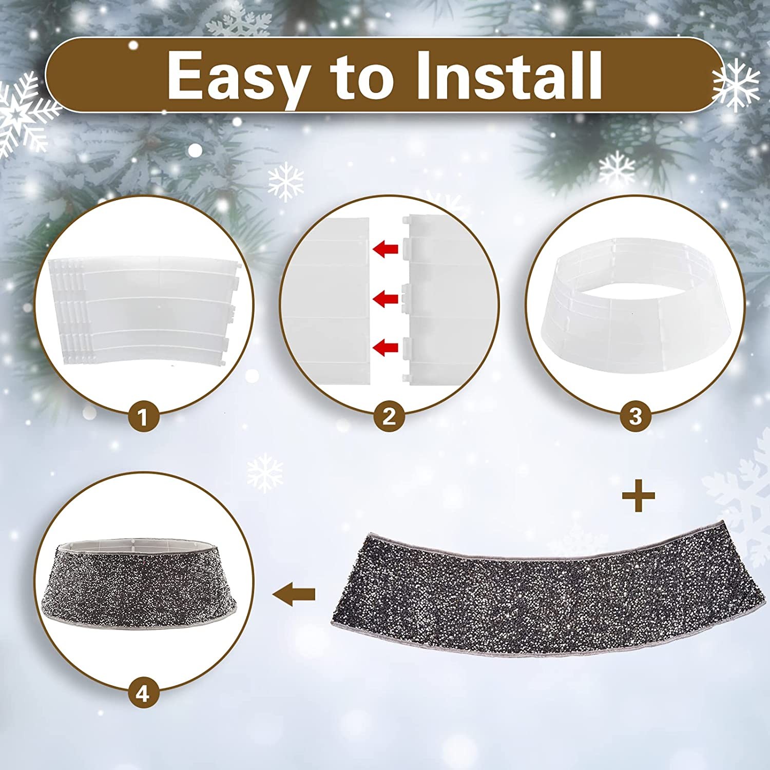 Quick Assembly:This Christmas tree skirt consist of 6 pieces plastics sheets and cloth collar, easy assembly required. Christmas decorations connect plastic sheets together by hooks at the joint, then dressing up the cloth collar.