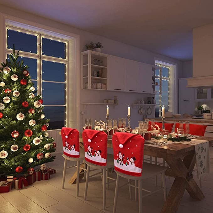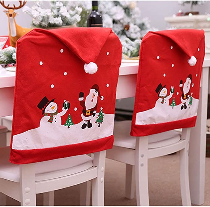 MSQ 2022 Christmas Decorations Red Christmas Chair Back Covers Decorations, Set of 2 Santa Claus Snowman Hat Xmas Chair Seat Slip cover for Christmas Dining Room Kitchen Party Decoration Ornaments