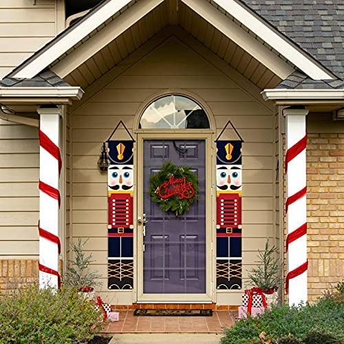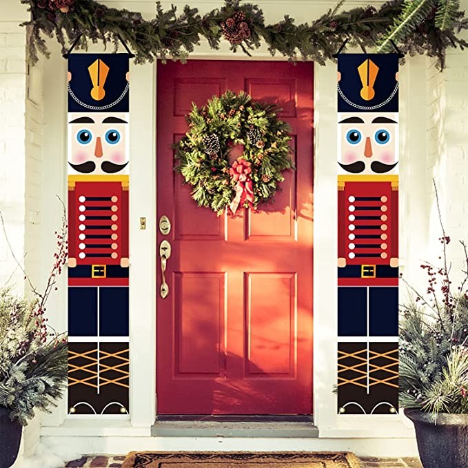 Nutcracker Christmas Decorations -Outdoor Christmas Porch hanging Decorations-Soldier Model Nutcracker Banners - for Holiday Outdoor Indoor Kids Garden Yard Party- 1 Pair