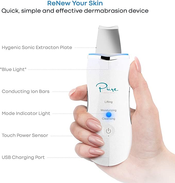 ReNew Skin Scrubber Professional Sonic Facial Exfoliator- Oily Blackhead Remover- Scrub Facial Peel- Cleans and Brightens Oily Pores- Blackhead Removal Kit- Firms Skin